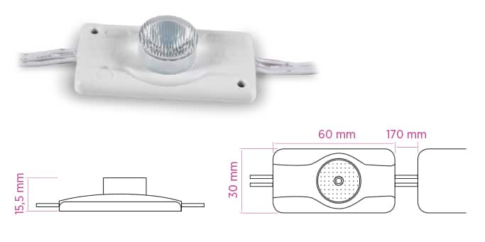 ReferenciaColorVoltiosWatiosFlujo luminoso (lm)Ángulo de luzNº LEDChipEspacio LEDMedidas mmMódulos x tira€/tira